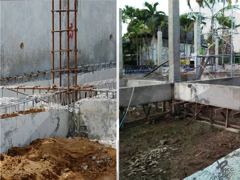 Jika level lantai dasar tingginya lebih dari 1,00 m dari level tanah, level rasuk bawah akan jauh lebih tinggi dari level tanah. Oleh karenanya, diperlukan pertimbangan lebih untuk menggunakan rangka kayu untuk pengecoran rasuk bawah selain untuk sisi balok, yang tentunya akan menghabiskan lebih banyak waktu dan biaya konstruksi.
