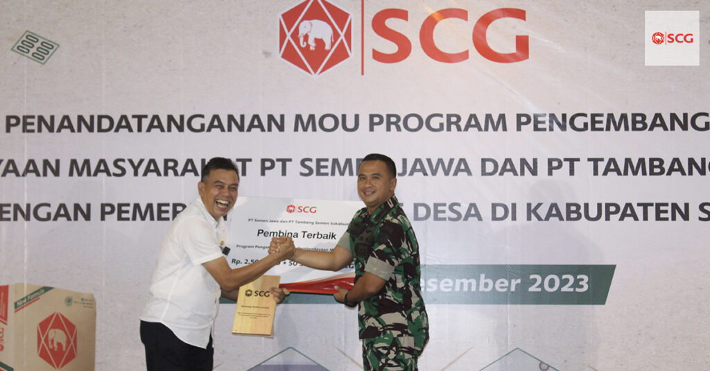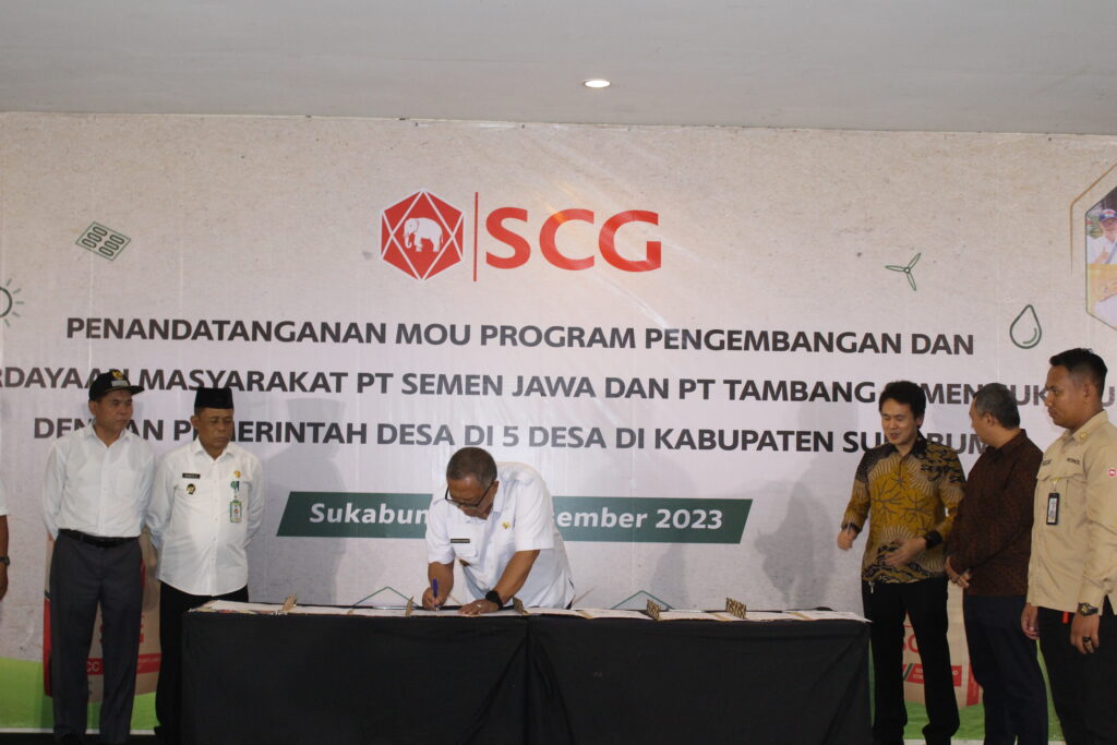 SCG, melalui PT Semen Jawa dan PT Tambang Semen Sukabumi, menandatangani Memorandum of Understanding (MoU) Program Pengembangan dan Pemberdayaan Masyarakat dengan Pemerintah Desa di Lima Desa Sukabumi pada 13 Desember 2023. Kegiatan ini menandai tahun kelima perjalanan kerja sama yang memberikan dampak nyata bagi Kabupaten Sukabumi.